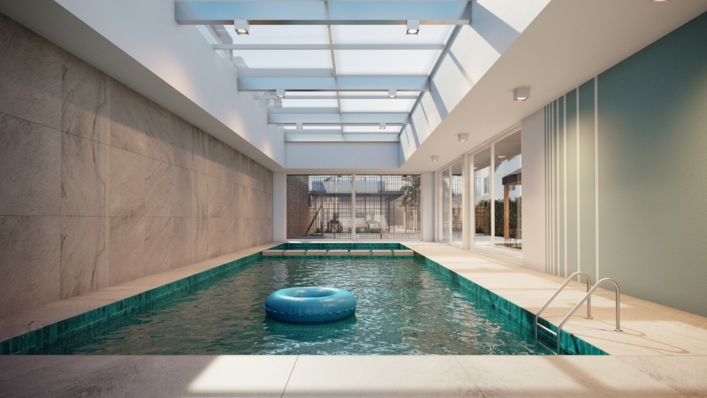 Piscina aquecida coberta e sauna.